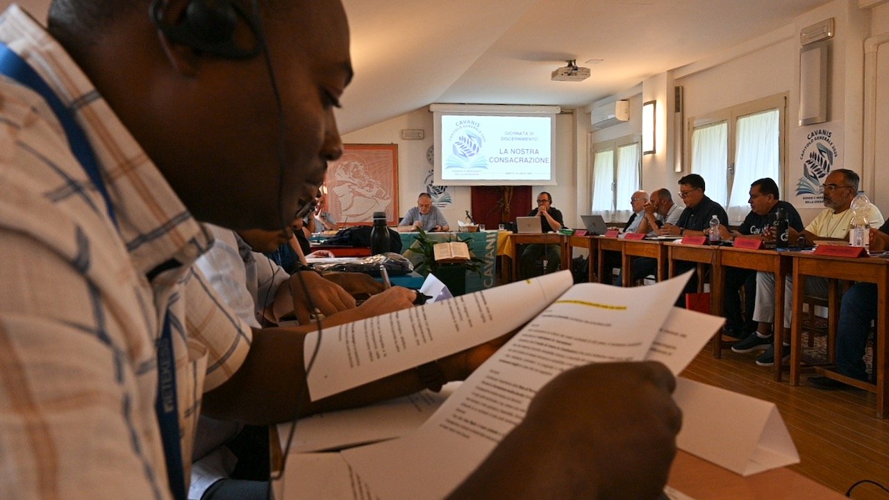 In sala, prima dei lavori, il moderatore di turno ha presentato il programma del pellegrinaggio a Venezia (domani) e nella sequenza ha lasciato la parola a Dr. Stefano Bucci, che, come facilitatore, ha spiegato la dinamica dei lavori (riconoscere e interpretare) per questa mattina. Il tema di studio della quarta giornata del Capitolo generale è il secondo Capitolo delle Costituzioni Cavanis: “La nostra consacrazioni a Dio” (Cost. 21 – 43) che presentano i tre consigli evangelici della Castità, Povertà e Obbedienza.