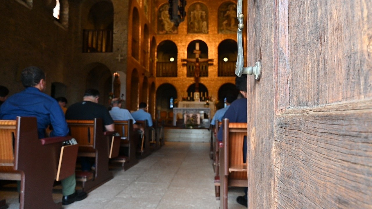 I Padri capitolari riuniti nella cappella per affidare i lavori allo Spirito Santo.