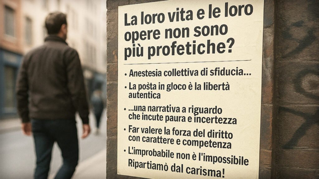 I giovani, per vivere e non solo sopravvivere in questo tempo di anestesia morale, hanno paura di avere un rapporto di impegno vocazionale di responsabilità. La posta in gioco è la libertà autentica, quella che crea legami. Una libertà che non si accontenta di essere liberi da, ma che sceglie di essere liberi per. Liberi per cambiare le cose, per non accettare la disuguaglianza come destino, per abitare i conflitti invece di negarli, per rigenerare le comunità, le istituzioni, i territori, “per dare voce a chi non ha voce, per scegliere l’umano, ogni volta che viene chiesto di scegliere tra l’umano e il funzionale, tra il giusto e l’utile, tra la verità e la convenienza”. Questa libertà ha bisogno di relazioni.