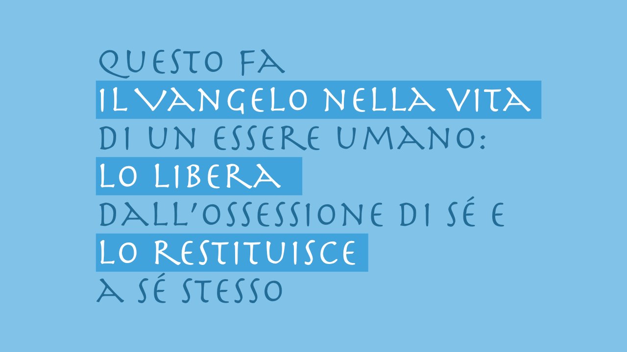 Ecco, questo fa il Vangelo nella vita di un essere umano: lo libera dall’ossessione di sé e lo restituisce a sé stesso.