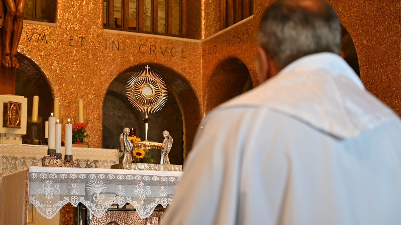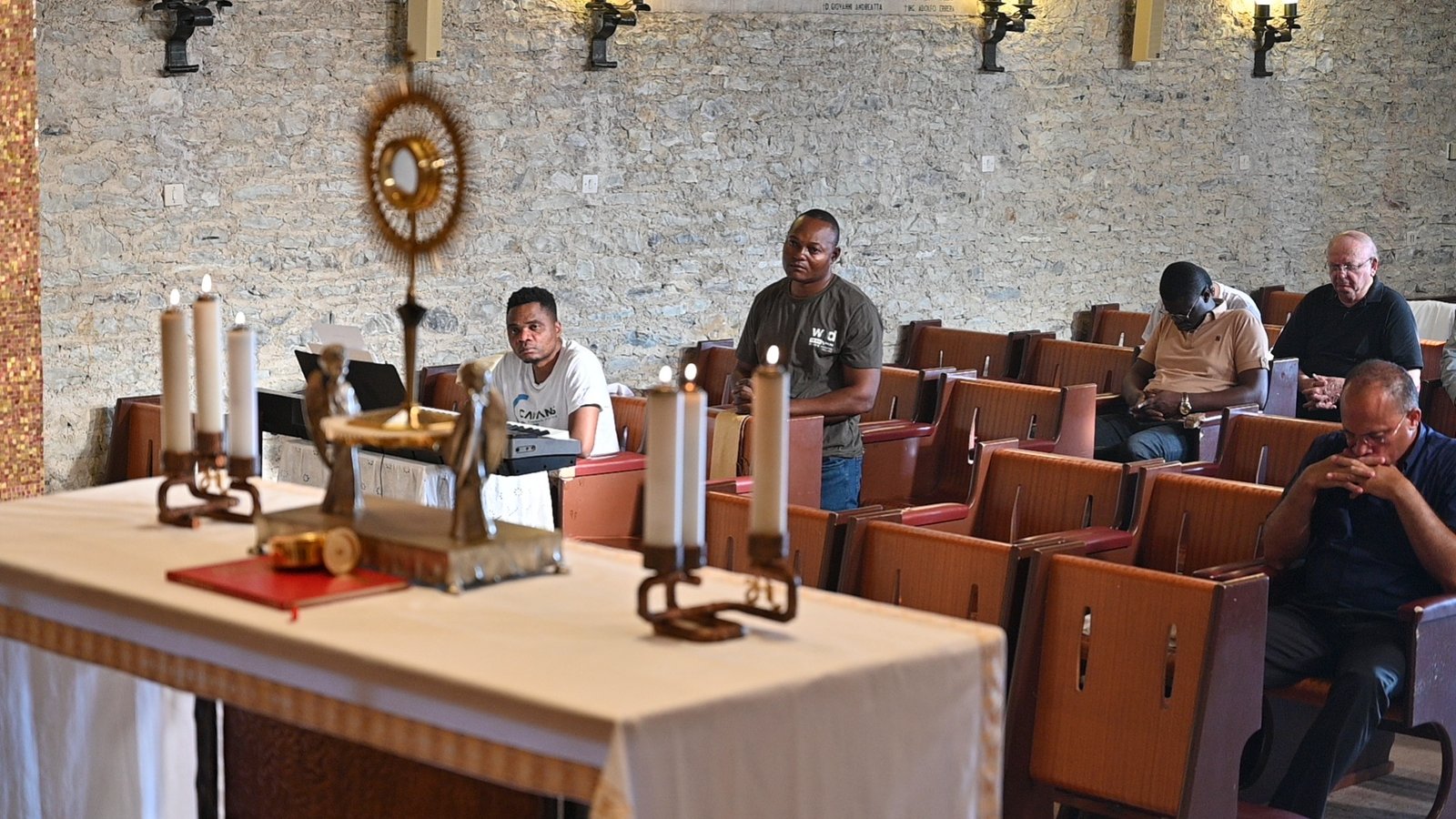 Al termine della giornata di ritiro, i Padri Capitolari si sono raccolti in silenzio davanti all’Eucaristia, cuore pulsante della fede cristiana. In questo momento profondo di adorazione, hanno affidato al Signore il cammino della Congregazione, lasciandosi illuminare dalla Sua presenza viva.